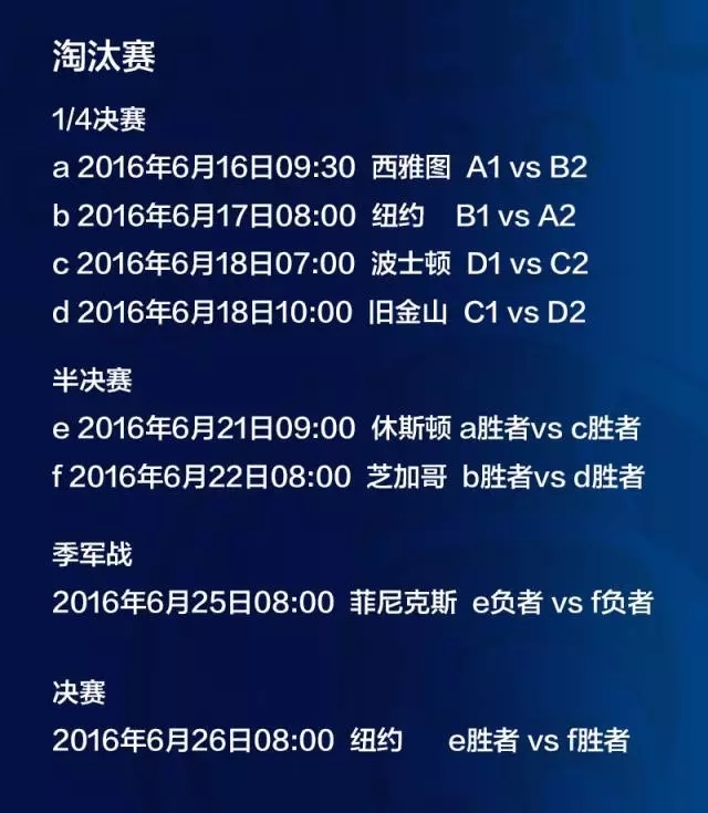 完整赛程表(北京时间)
