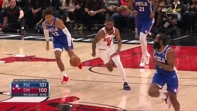 篮板球争夺:恩比德缺阵后,76人内线护框和篮板能力大幅下降。若博纳和乌布雷无法有效卡位武切维奇,公牛前场篮板将获得大量二次进攻机会。